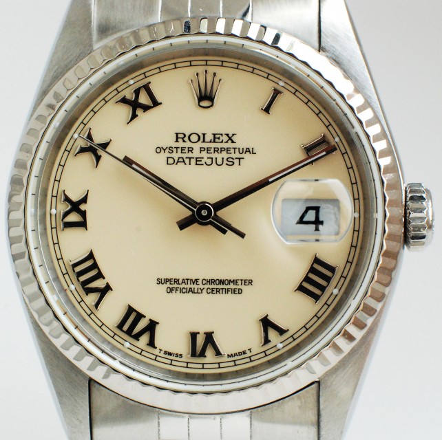 Ziffernblatt: Orig. Rolex in Creme mit römischen Weißgoldindexen